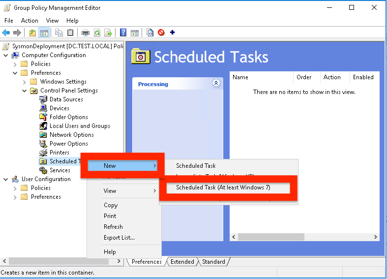 - İlgili GPO oluşturduktan sonra yeni bir zamanlanmış görev oluşturulur.