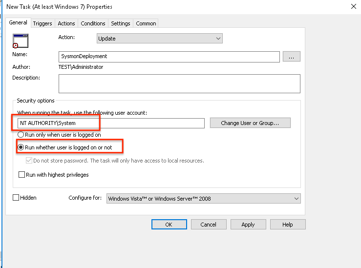 Sysmon’un AD ortamında dağıtımı için birden çok yol bulunmakla birlikte, biz zamanlanmış görevlere ekleme yöntemiyle Sysmon’u ortamımızda dağıtmaya çalışalım. Şayet Sysmon’u, tek bir istemcide test etmek isterseniz daha önce oluşturduğum bu scripti kullanarak Sysmon bölümündeki ayarları yapmadan direkt Powershell bölümüne geçebilirsiniz.