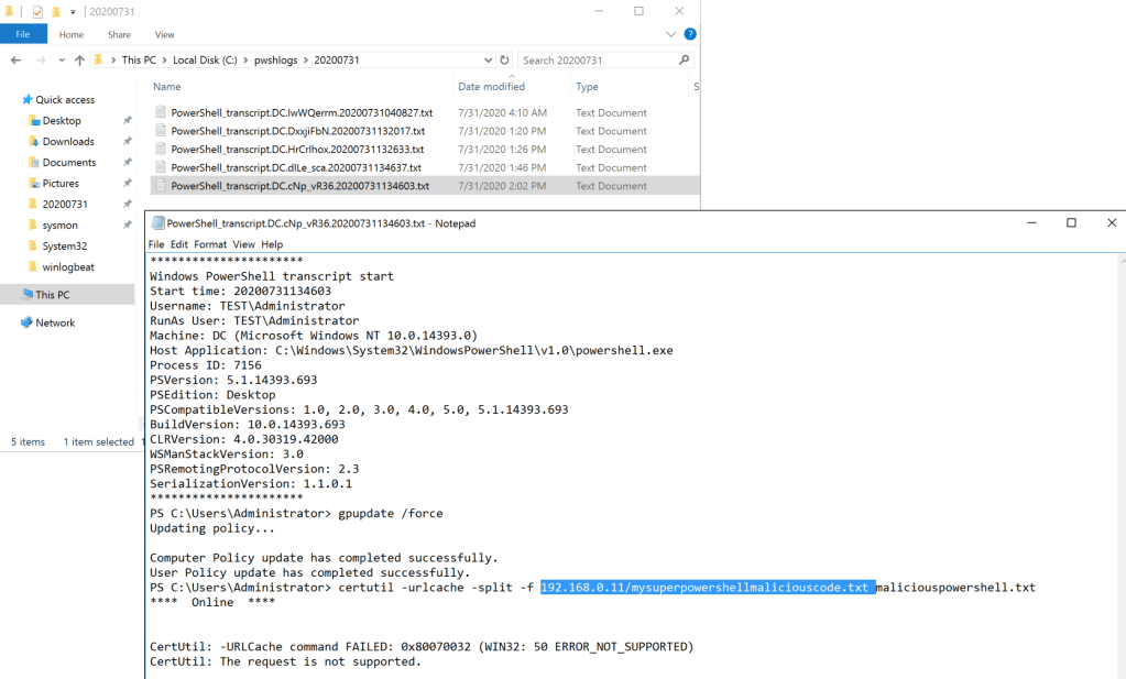 Powershell loglama ile ilgili ayarlar aşağıdaki şekilde oluşturulur (Konuyla ilgili daha detaylı bilgi için bu bağlantıyı okumanızı tavsiye ederim.):