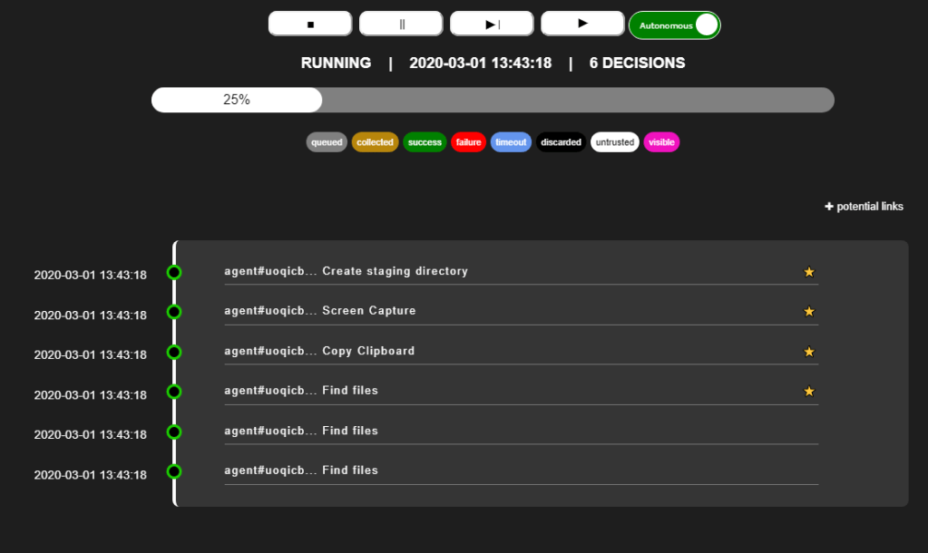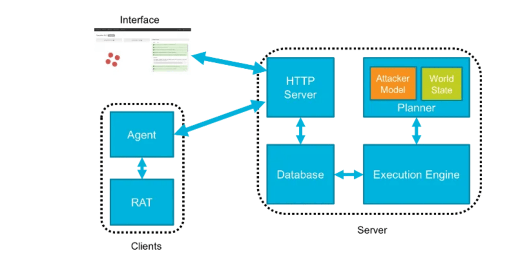 Caldera’nın çalışma mantığı, Caldera‘nın yüklü olduğu sunucudan, ilgili agenta atak senaryoları gönderilmesi ve senaryolar kapsamında yapılan atakların başarılı olup olmadıklarına dair raporların oluşturulmasu üzerine kurulu. Ayrıca, Caldera‘nın mavi takımlar için hazırlanmış modülü de bahse konu çalışma mantığıyla hazırlanmış.