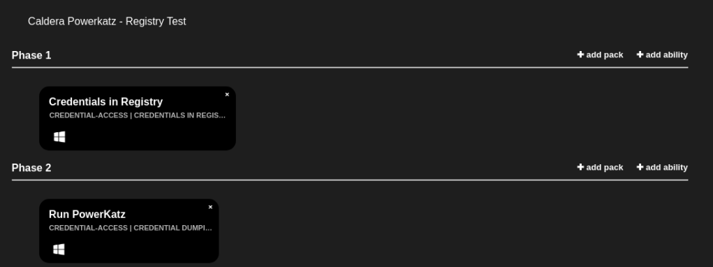 Varsayılan senaryolara ek olarak manuel oluşturulan senaryolar da Caldera‘ya eklenebilir. Bu işlem için Campaigns > adversaries sekmesinden aşağıdakine benzer şekilde senaryolarının oluşturulması mümkün.