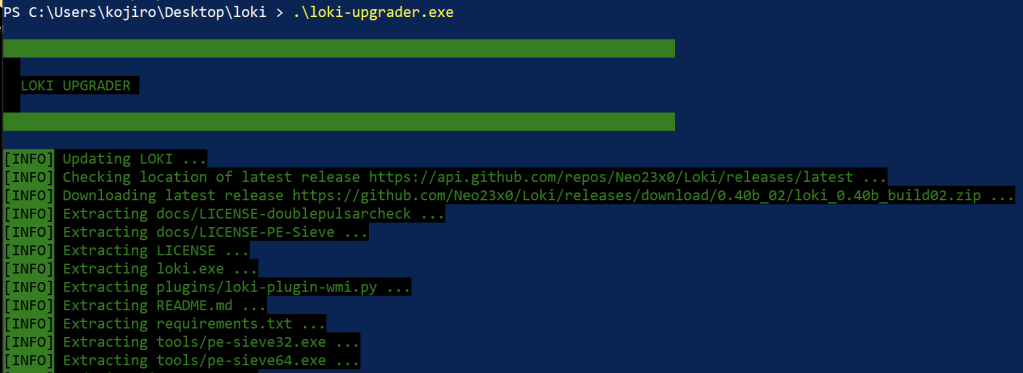 loki-upgrader.exe’yi çalıştırarak güncel kural setlerini indirmeye başlayalım.
