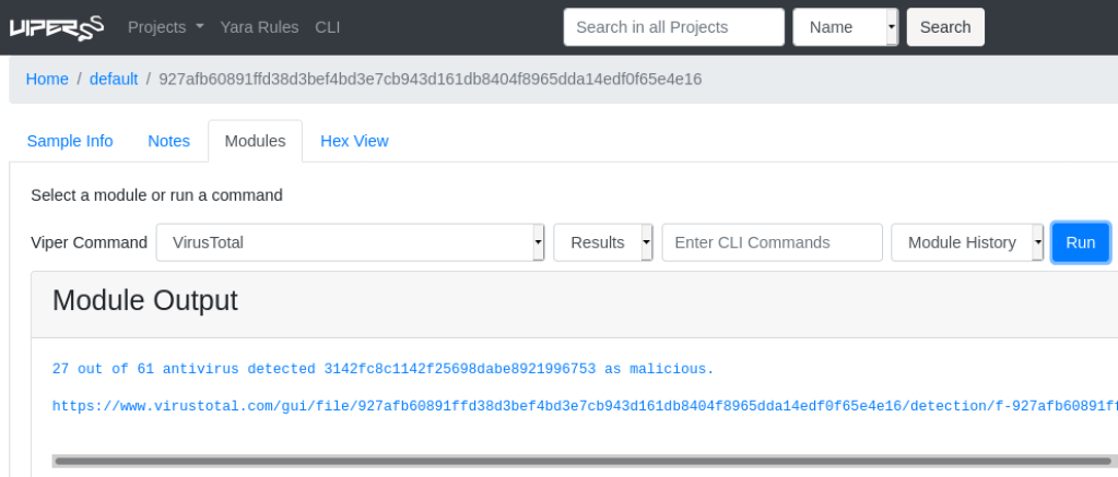 ~/.viper/viper.conf yolundaki config dosyasını düzenleyerek VirusTotal benzeri platformlara API yoluyla sorgular göndermek mümkün.