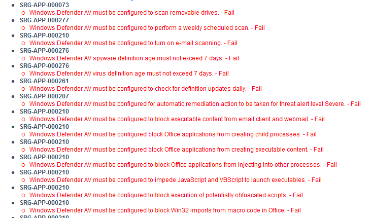 Örnek olarak Windows Defender politikası ile ilgili yapılan tarama sonucunda “fail” ve “success” olan sonuçları inceleyelim.