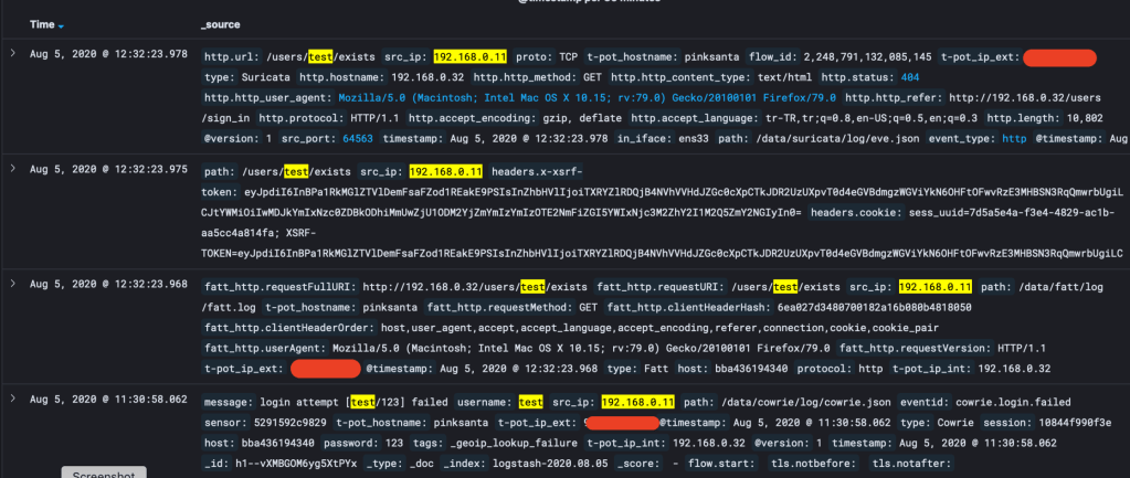 Kibana ve dashboardlara geçmeden önce dilerseniz honeypot üzerinde biraz gürültü oluşturalım ve sonuçlarını gözlemlemeye çalışalım.