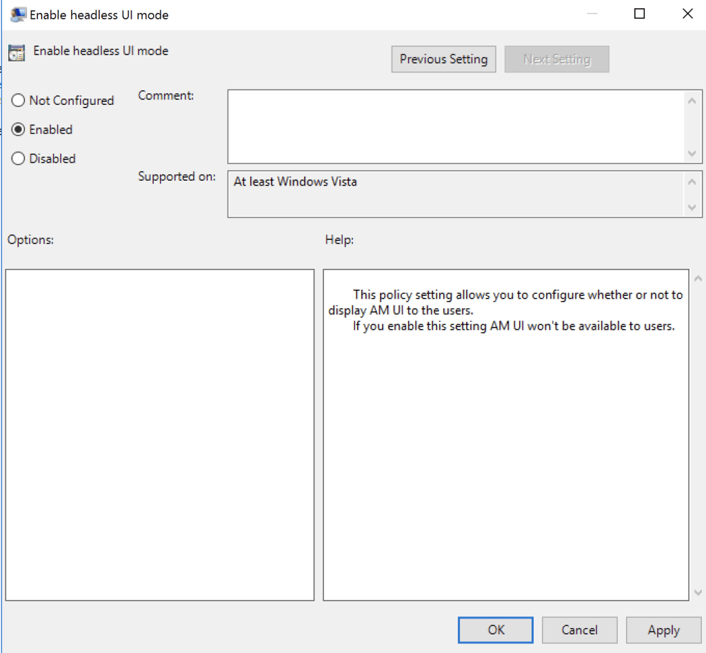 - Computer Configuration > Policies > Administrative Templates > Windows Components > Windows Defender > Client Interface > Enable headless UI mode seçeneğini kullanarak detaylı ekranların görünmesi kapatabilirsiniz.
