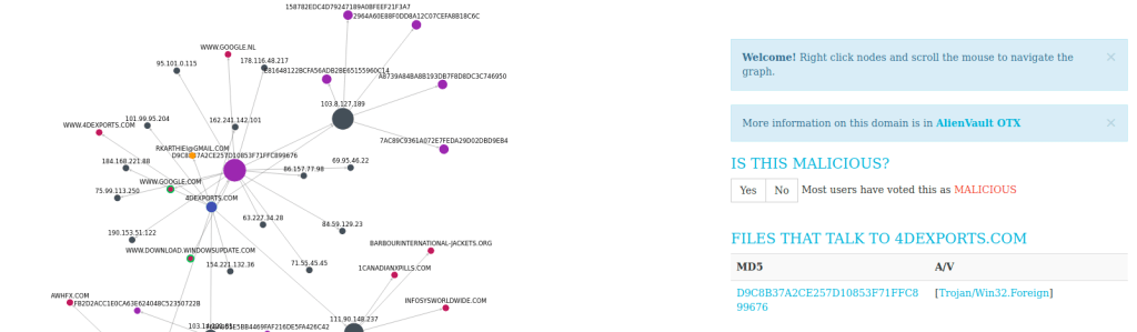 - AlienVault, Talos ve ThreatCrowd veri tabanlarına erişim için bağlantı adreslerini