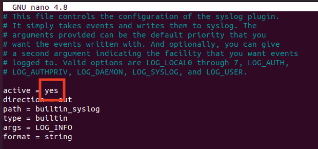 Sonrasında auditd logları Syslog ile göndermek için dosya içinden “active=yes” düzenlemesini yapalım. Yapılan düzenlemenin etkin olması için sonrasında servisi yeniden başlatalım ve rsyslog kurulumuna geçelim.