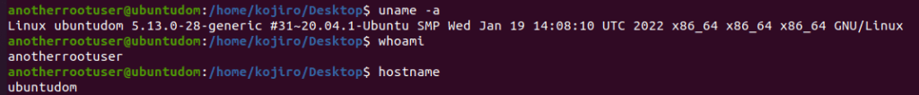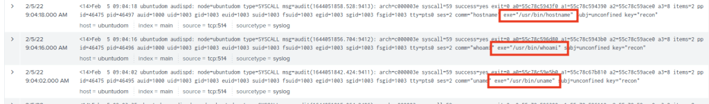uname, whoami ve uname recon logları:
