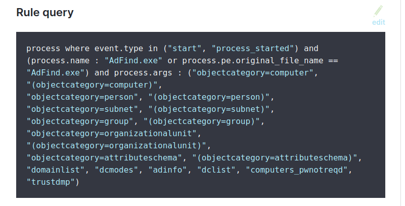 - https://www.elastic.co/guide/en/security/current/adfind-command-activity.html