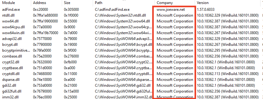 İlgili loglar incelendiğinde “Company: http://www.joeware.net” ibaresi tespit için dikkat çekmekte.