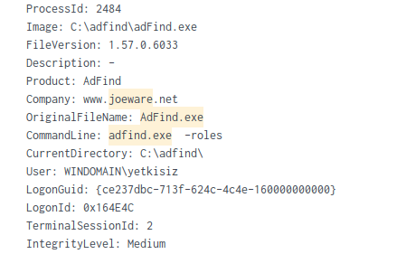 adFind aracı çalıştıktan sonra sistemde oluşan logları toplamda dört başlıkta kategorilendirmek mümkün. Bu kategorileri, Windows Security, Sysmon ve Powershell logları olarak sınıflandırabiliriz.